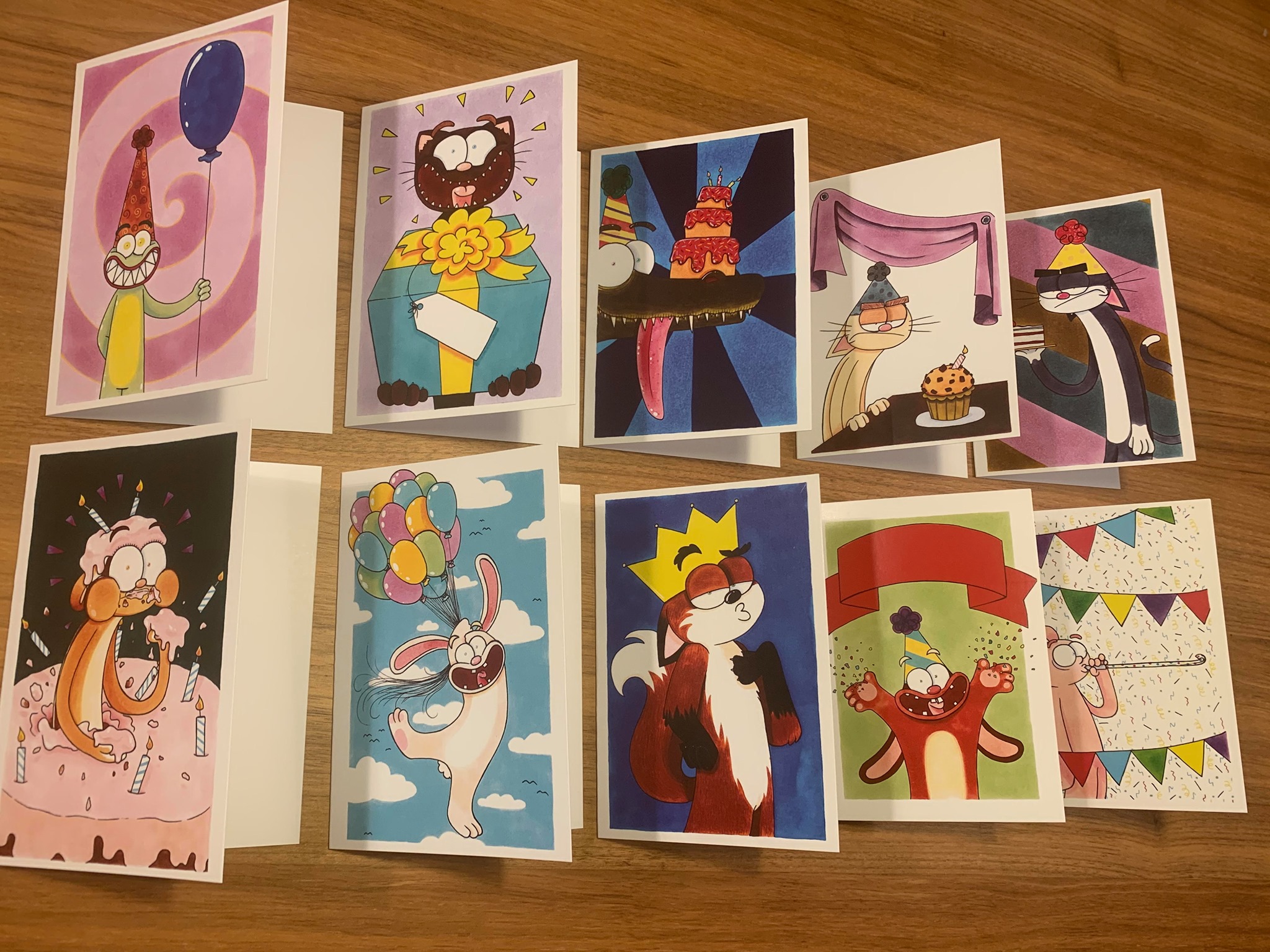 - 10 pk bursdagskort: Ti forskjellige motiver i A6-format (10,5 x 15,2 cm). Pris: 150 kroner. De samme pakkene brukes til dugnadssalg, og koster da 100 kroner ved bestilling av minst 100 pakker.